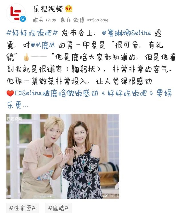 鹿晗又上热搜啦?但这次终于不是因为和谁谁的CP,而是被众多明星夸为娱乐圈的“礼貌担当”。先是被Selina表扬与其做节目《好好吃饭吧》当中表现十分有礼貌: