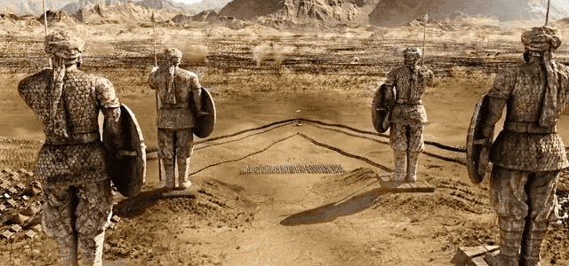 决战时,巴霍巴利王即将战败,但在一个雕像的鼓舞下,他重新站起。