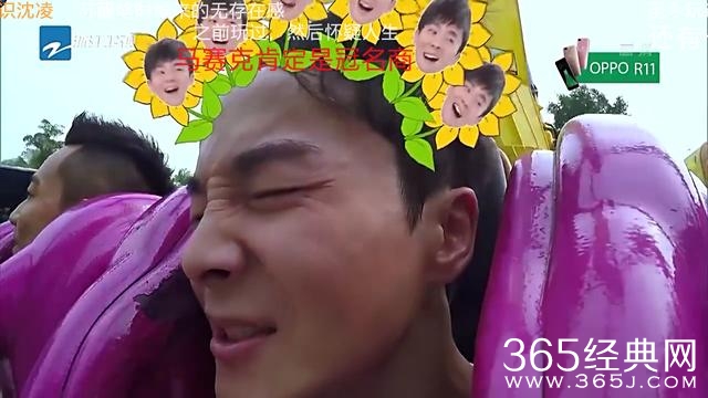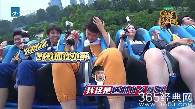 看着陡直的轨道,说实话隔着屏幕都能感觉到心惊肉跳。大家都在尖叫害怕的时候,董子健还在意着自己风中凌乱的造型,一直用手拖着头发,不让高高的发际线露出来,真是把偶像包袱带到了空中,内心os:既然已经这样怂了,但至少造型不能乱。