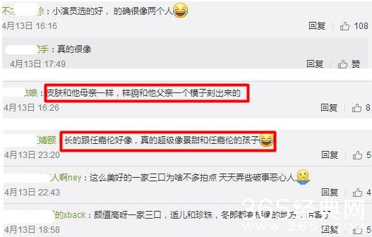 这张不是很明显,小演员微博里的跟他爸妈分别的合照才叫想呢~~