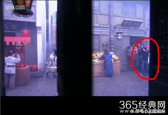 大家注意画面右边的一群人,全是穿现代衣服的,其中还有个貌似拿着摄像机