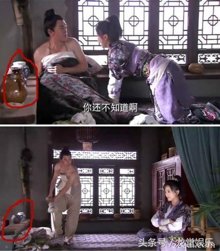 【龙门镖局】吕清橙叫蔡八斗起床,注意,床头上开始是放着四个罐子。蔡八斗立即起床,这时床头上的罐子竟突然消失了