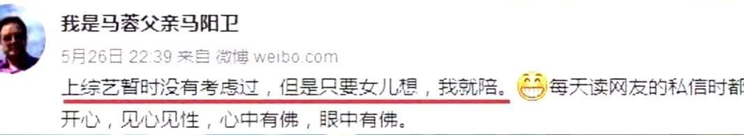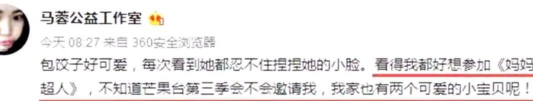 说自己也有两个宝贝,希望参加妈妈是超人。随后马蓉父亲也表示,会支持女儿。