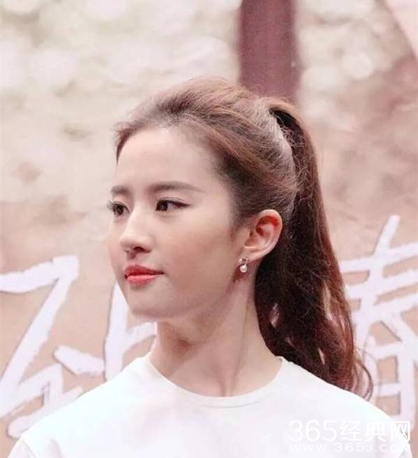 刘亦菲马尾的造型,很有学生妹的感觉,清纯又漂亮。