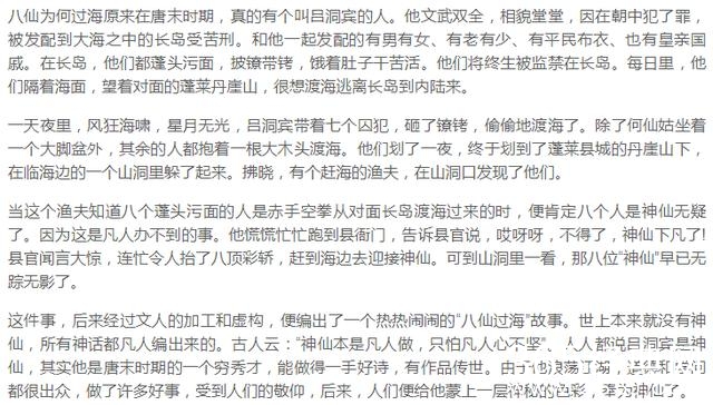 八仙过海,是一个优美的神话故事。相传从前吕洞宾、汉钟离、张果老、铁拐李、韩湘子、曹国舅、蓝采和、何仙姑共八位神仙,为了渡过东海,踏险浪、战恶魔、各施法术和本领,最后终于到达了彼岸——蓬莱仙境。