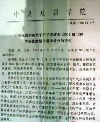 首先是中戏的态度,表演系系主任黄定宇要对张默予以开除处分。