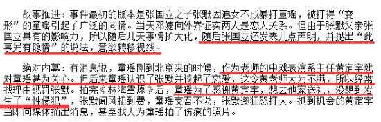 可张默、张国立也不是坐以待毙的人啊,找来记者向童瑶和公众道歉的同时,很快就放出张默之所以控制不住情绪打了童瑶是因为自己被戴了绿帽子,并顺带把火烧向了中戏,称童瑶与中戏表演系系主任黄定宇有染。
