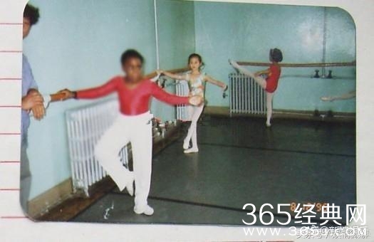 刘诗诗8岁时练舞蹈的照片中,身材修长,比例匀称的诗诗穿着白色长筒袜,小腿绷得笔直,练功十分刻苦。