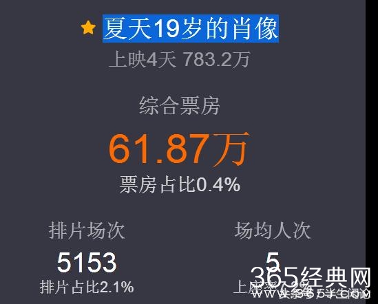 跪求一番排片率的《夏天19岁的肖像》日票房竟然只有61.8万,已不忍直视!