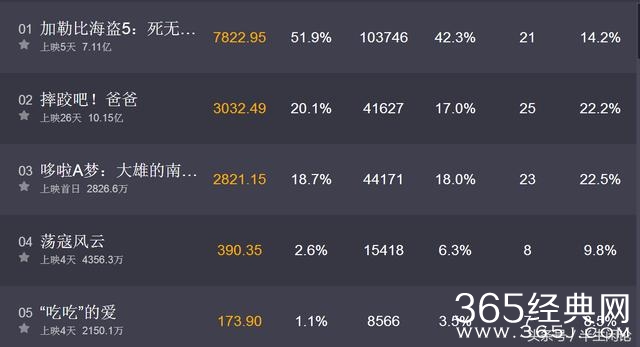 排名第一的《荡寇风云》因为前期宣传不到位,很多人根本不知道这部电影,所以票房每日维持在几百万的水平,怕是要到1亿的总票房也很难!