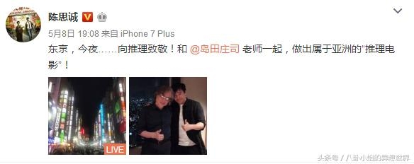 其实在此之前陈思诚曾在微博中放出和岛田庄司在日本会面的照片,他当时写要和岛田一起做出属于亚洲的推理电影。