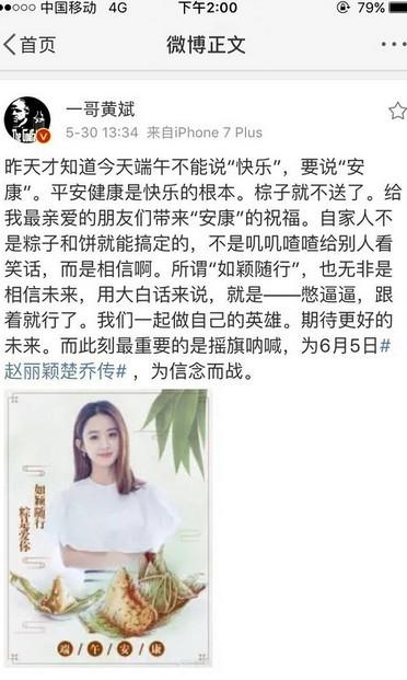 黄斌似乎看到了大家的言论,再次在下午的时候发了一条微博,看似是祝福大家端午安康,其实是为了回应粉丝。