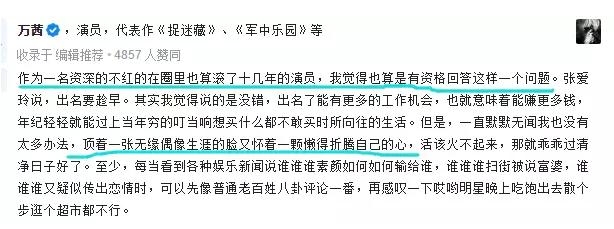 如此耿直又接地气的回答,让万茜像张译一样,在知乎上面红了起来!