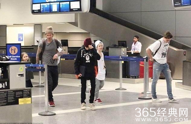 贝克汉姆近日现身机场,三个儿子一个比一个帅!小七还是大家的焦点,被贝克汉姆紧紧的拉在手中!