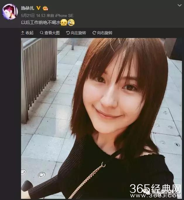 面对突如其来的质疑,热依扎迅速回应是因为水肿,并附上一张n久前的自拍,还保证以后工作前不喝水。