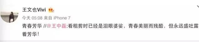 王文也说好的退出微博,现在关闭评论一样玩得很开心。她这种追星方式,大家看看也就算了,毕竟不是谁的爸爸都是王中磊啊!
