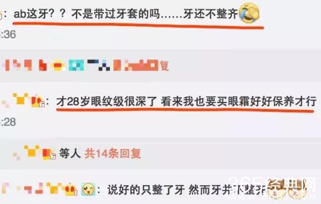 可是到了微博上,王文也并没有帮ab修图,ab的眼袋很重,眼角下方出现很多皱纹。如果是从眼睛上对比,少女气满满的王文也,这次完胜ab啊。