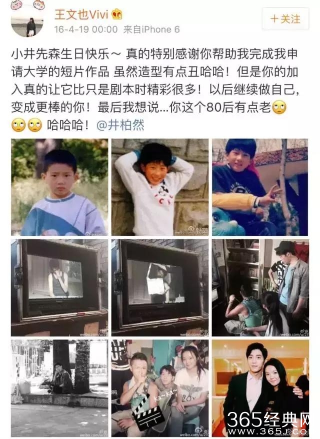 井柏然生日,王文也晒出一组井柏然小时后的照片,还透露了二人的亲密关系,还调侃他这个80后有点老