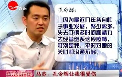 马苏的好友陈思斯(曾在饰演甄嬛传的曹贵人)在一次节目中爆料称:”马苏曾与孔令辉的一次争吵中,孔令辉气急之下大骂马苏让她滚,马苏拿着行李摔门而去。独自在街头的马苏那时才意识到自己连个去处都没有,于是决定独自买房,并“坚决不要孔令辉一分钱”。之后马苏拼命拍戏,通过6年的努力在北京买下房子。“