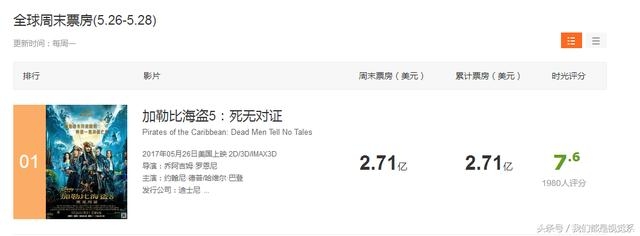 目前船长全球票房是2.7亿美元,更新日期还是在5.28的,现在的话肯定超过了3亿了。