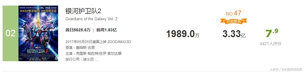 前段时间刚上映的银河2在内地表现欠佳,但是在北美表现可是很强劲的,北美票房达到3.33亿美元
