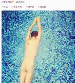马伊琍主演的《风和日丽》收视率取得第一,文章还为妻子马伊琍裸泳,兑现当时许下收视率第一就裸泳的举动,还被赞真爷们。