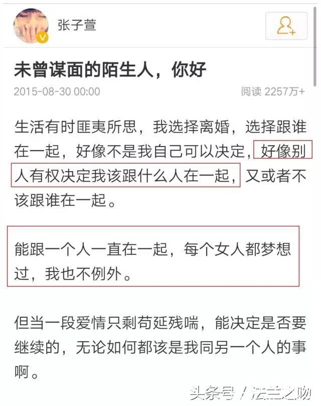 离婚消息传出来之后,并有爆料称是“小三”张子萱的介入。