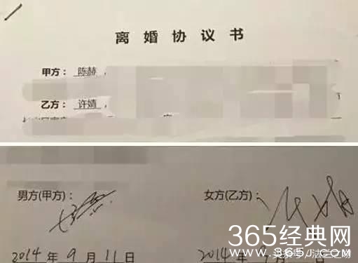 之后陈赫立马在微博晒出与许婧的离婚协议书,签署日期是2014年9月11日。