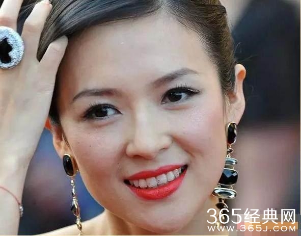 章子怡也有不留心的时候,妆容再精致,一笑起来,留在牙齿上的口红印真的很不美观哦!