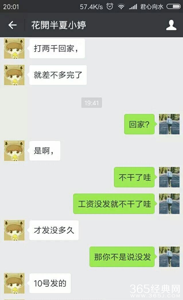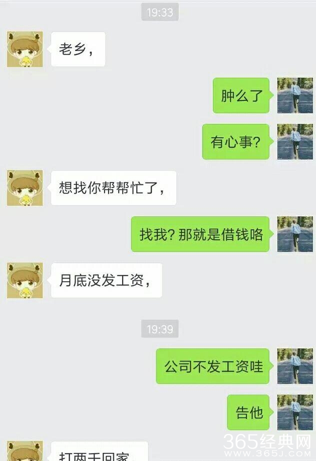 果然男主为人比较灵敏,一看到女主说话磕磕绊绊,就知道女主有心事,果不其然,女主也很直接,说要找男主帮忙,直觉很准的男主,直接就猜出来女主要来借钱,女主给出原因,因为月底公司没有给发工资。过了几分钟,男主回复:“公司不发工资,告他”,由此看出男主平常生活里面是一个非常直爽的人,一般情况下男人看到女孩没钱,会问需要多少,而男主直接打太极,明显是不想借钱,男主生活里应该是一个不博爱的男孩子,不会看到那个女孩想要帮助就贴上去做暖男。