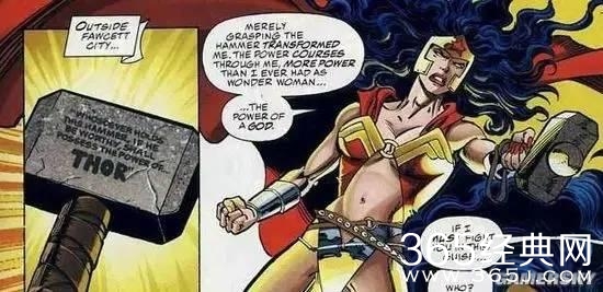 最后放个小插曲,在90年代推出的漫威大战dc的漫画中,神奇女侠还拿起过雷神之锤,也是第一个拿起此锤的女性。