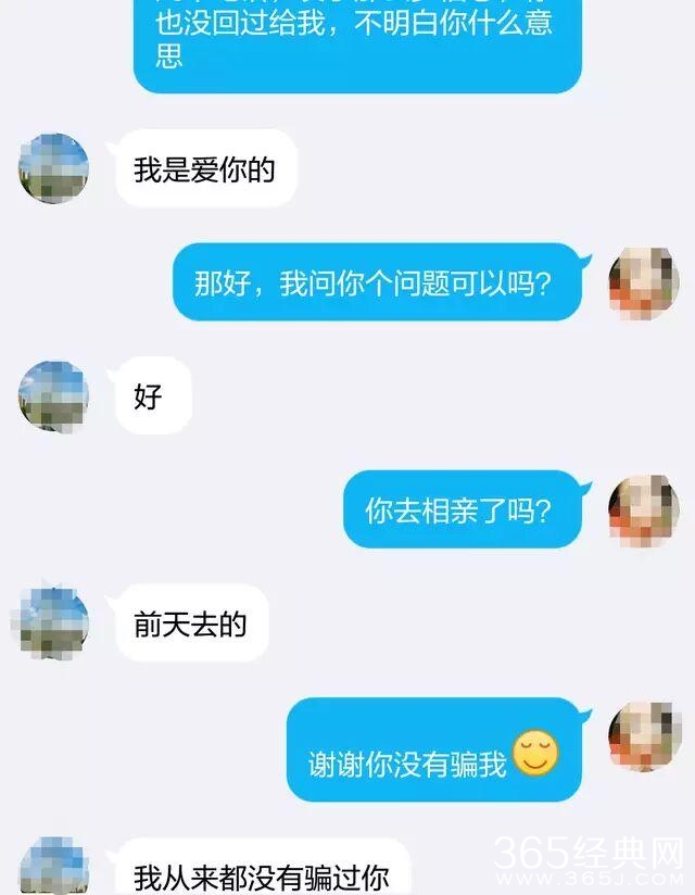 男主然后厚着脸皮说:“我是爱你的”,女主直接问他去相亲了,男主也没有丝毫保留,直接说去了。