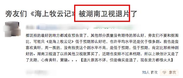 虽然很多时候网友们都比较毒舌,但是很多都切中要害。关于《海上牧云记》退片事件,有网友就一针见血指出问题所在,故事太拖沓!毕竟芒果台早前就曾经因为故事拖沓冗长收拾滑坡造成过很大的损失,所以之后的电视剧都力争剧情紧凑。《海上牧云记》还撞这个枪口,难怪芒果台不买账呢!而且很多网友都提到这并不是第一次被退片,不得不说还真是有些背啊!被退一次就已经很丢人了,这三番两次的退片,已经不能够用尴尬来描述了!