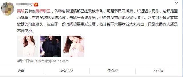 网友对吴昕莫名其妙退出《跨界歌王》的事情也是深表困惑,湖南卫视施压说,姚笛截胡说,唱功太差主动退出说……一时之间涌现各种猜测。