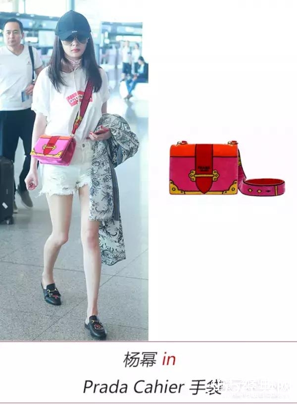 前面说的Prada宽肩带手袋今年已经被各路女明星刷屏了!不过大幂幂这款粉色天鹅绒手袋倒是很适合六一儿童节的氛围呢~