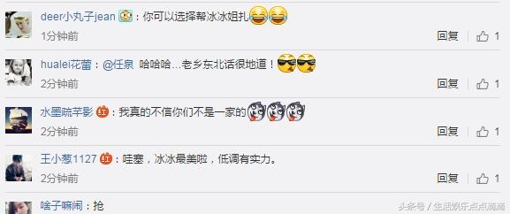 很多网友表示,“你可以选择给冰冰扎”,“我真的不相信你们不是一家的”,“泉哥微博日常之冰冰”。