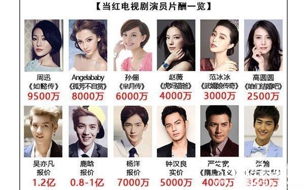 下面呀有最新的小鲜肉片酬出来了看起来不,有个叫鹿晗的在第一位,比其它女星高多了,能拍几个《人民的名义》了,花这么多钱,虽然没啥演技,卖萌也是可以挣 钱的哦!