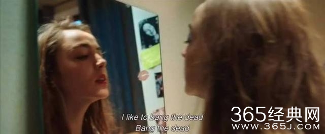 而当Justine的女性意识被激发出来时,她穿上姐姐给她的舞会裙,伴着迷幻的音乐在镜子前搔首弄姿,并涂上性感的大红色口红,亲吻镜中的自己。