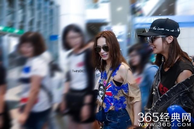 照片中两人潮范十足,阿娇不改性感路行,肉色印花潮衣配上破洞牛仔裤,实在让人欣赏不来。想必这,阿sa则显得保守许多,一身牛仔装扮,网友直呼:美哭了!