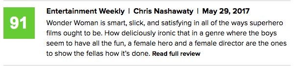 DC大作[神奇女侠]评论正式解禁,在[超人大战蝙蝠侠:正义黎明]和[自杀小队]过后,看过的媒体一致表示这大概是最好的一部DC漫改大片。
