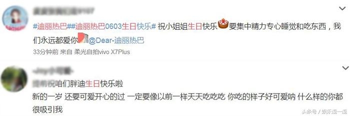 迪丽热巴的粉丝们献上的祝福几乎都是让胖迪好好吃饭好好睡觉,总之就是离不开吃啦,谁让胖迪就喜欢吃呢,粉丝们也是投其所好啦~