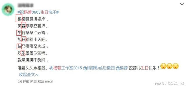 这还都是文艺范,藏头诗谁来就来,真是字里行间都是对杨蓉的爱意啊!