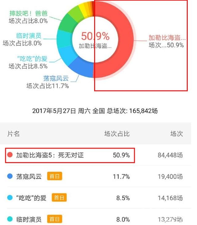 她表示:同期上映的三部国产片的排片占比,加在一起都没有一部《加勒比海盗5》高。