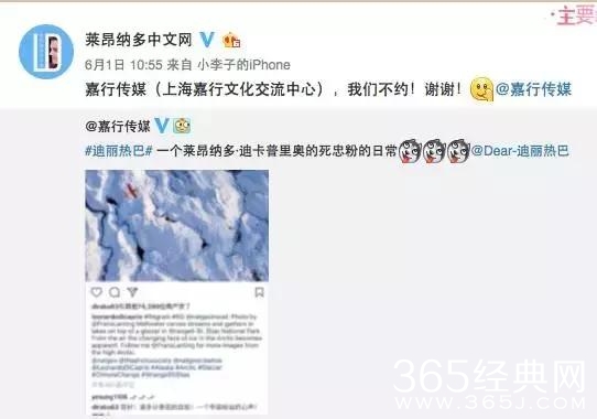 迪丽热巴所在的经纪公司立马截屏把这件事拿来发微博了,粉丝肯定觉得自家大明星私下也像个追星的小迷妹,非常可爱。可是小李子官方后援会不乐意了,立马转发表态:不约!