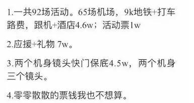 920天的陪伴,追了92场活动,65场接送机,路费+酒店+票费+应援礼物+相机费用共计人民币18万元。