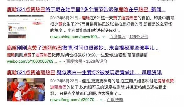 还有一些很日常的互动也会被定义为暧昧,又是免不了一番通稿大战,比如某日鹿晗点赞了迪丽热巴的微博。