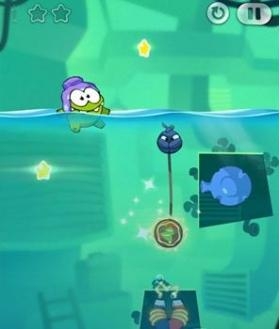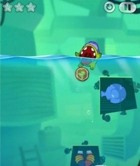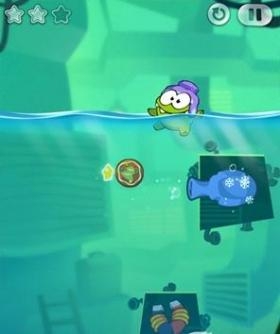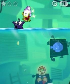 4.放开糖果,在漂浮到水平星星的时候把糖果吹过去吃掉星星。