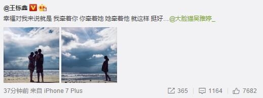 他在社交平台上发了一则微博,微博上一家三口的照片看着就很美好,而且看不出来,王栎鑫的文采还真是好,“幸福对我来说就是 我牵着你 你牵着她 他牵着你 就这样 挺好”。