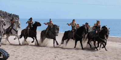 当一群亚马逊女战士策马奔来时,简直是力量与美感的双重高潮。