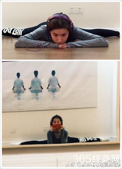 刘亦菲劈出一字马,还能玩手机,可见一字马难不住茜茜啊,这嘟嘟嘴也是萌。